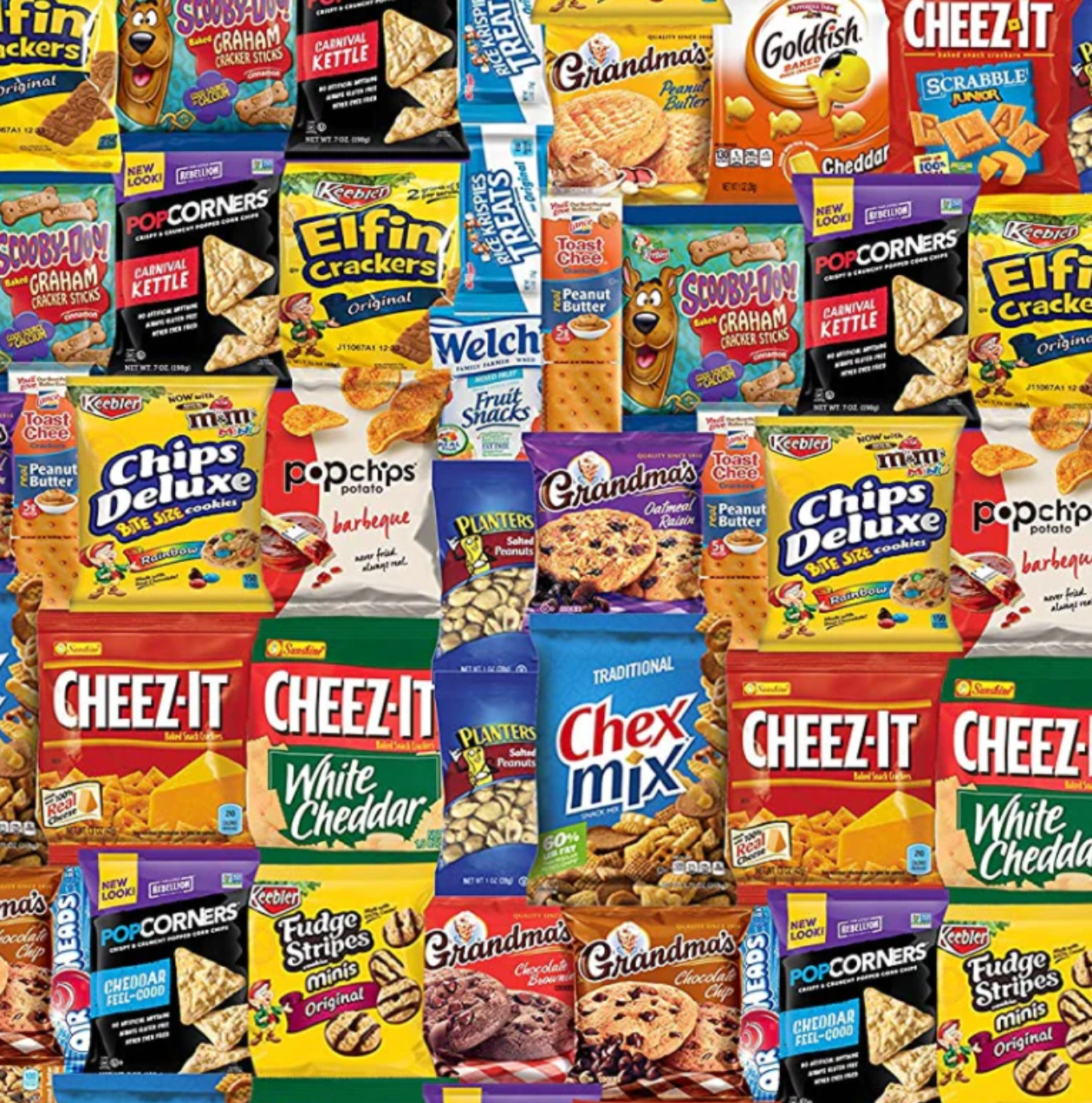 Cookies, Crackers, Chips, Meat Sticks, Granola Bars and Fruit Snacks